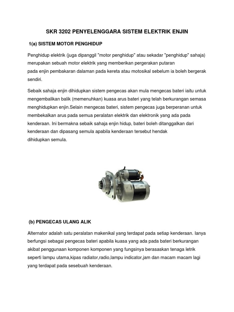 Skr 3202 Penyelenggara Sistem Elektrik Enjin 1 A Sistem Motor Penghidup Pdf